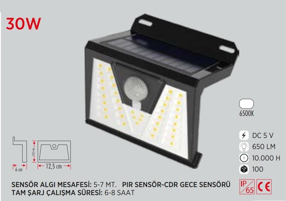 YCL YSB-130 30W SOLAR GÜNEŞ ENERJİLİ DUVAR APLİK